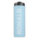 Keep hot beverages hot and cold beverages cold with this thermal, insulated thermal tumbler that is a trendy, light blue colour along with name printed in white, modern typography. Edit your thermal tumbler and replace name with desired name. Perfect for a birthday gift, wedding groomsman gift, etc.