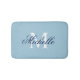 Light blue monogrammed bath mat | classy bathroom decor. Elegant navy blue and white monogram design. Stylish script typography with personalised name initial letter. Cute personalised wedding or Birthday gift idea for men and women. Pretty chic interior decoration.