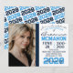 Navy Blue, Light Blue & White Modern Unique Graduation Invitation - 1 Photo on White