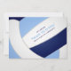 This volleyball birthday party invitation features an image of a volleyball that has light blue, navy blue and white panels, upon which you can customise the party details to suit your volleyball themed celebration - by katz_d_zynes