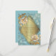 A light blue palette is in front of a copper/bronze Barogue-style background pattern. Cards are decorated with cream flowers and gold leaves over a diamond-shaped frame to say thank you.