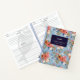 Floral recipe notebook featuring a pattern of hand-drawn flowers in pink and peach against a pale blue background. Personalise with your name in modern white letters on a dark blue label beneath a cute balloon whisk.