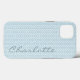 This girly phone case features a light blue decorative abstract pattern and is personalised with her name.