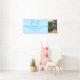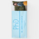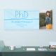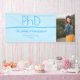 A banner that celebrates a PhD graduate with words and a picture. This minimalist design is in shades of blue. The photo is a template that is meant to be swapped out for your own. All the words and both colours can be customised.