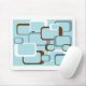 It's hip to be square! Beautiful brown, white and blue squares on a light blue background cover this mouse pad
