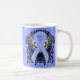 Light blue ribbon with wings and a filigree pattern. The light blue ribbon stands for DiGeorge Sequence Awareness, Hyperaldosteronism Awareness, Klinefelter's Syndrome Awareness, Men's Health Awareness, Pro Choice Awareness, Shprintzen Syndrome Awareness, Trisomy 18 Awareness. It also stands for the following: January is Graves Disease Awareness Month. March is Lymphedema Awareness and Spay or Neuter Pets Awareness Month. April is Cushing Syndrome Awareness Month. May is Addison's Disease Awareness and Behcets Disease Awareness Month. June is Scleroderma Awareness Month. August is Velo-Cardio Facial Syndrome Awareness Month. September is Chronic Illness Awareness, Prostate Cancer Awareness Month.
