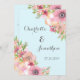 Wedding invitation custom template cards in light pastel sky blue with vintage pink watercolor flowers. Customise these invitations with your wedding details. Available in matching products for all of your wedding needs.