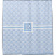 This elegant, stylish shower curtain looks modern and upscale with a hint of Art Deco style. In light blue and white, the curtain has a central square where you can easily add your monogram letter. Above and below that is a repeating blue-and-white scallop / scale pattern that looks like it's right out of the Roaring Twenties. The top and bottom are edged in a stripe of light blue.