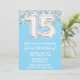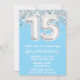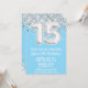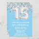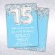 Light blue and silver 15th birthday party invitation 15 birthday party invitation for a boy or girl with modern script writing and fun foil balloons.