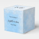 A light blue sky as background. Decorated with faux glitter, sparkles. Personalise and add your names and the wedding date.