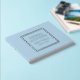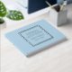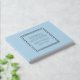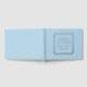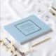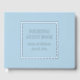Light blue colour, simple wedding guest book with stylised foil print within a square border that features the bride and groom's name along with wedding date in your choice of colour foil print. Seen here in silver foil print. Select your guest book style.