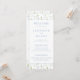 Experience sophistication with these watercolor wedding menu cards, highlighting refined light blue spring flower blooms and delicate modern calligraphy text within a rustic pattern.