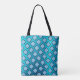 Light Blue Squares on Turquoise Metallic b/ground Tote Bag
