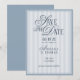 Light Blue Striped Old Money Calligraphy Wedding Save The Date