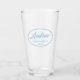 Beer glass for the wedding groomsman that features his name printed in a trendy, light blue, stylised script inside a light blue colour oval border along with wedding year date. A great party supply idea for a bachelor party! Personalise your beer glass by editing and replacing name and date with your own. Available in many, popular wedding colour schemes.
