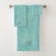 Pastel blue with gold accents, tropical palm leaves in a seamless pattern. Optional monogram.