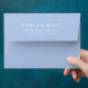 Enhance the allure of your rustic folk wedding invitations or save-the-date announcements by choosing these elegant envelopes adorned with delicate light blue and white wildflower blooms.