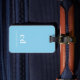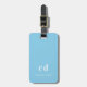 A light blue coloured background. Personalise and add your monogram letters and full name on the front. Your contact information on the back.