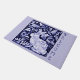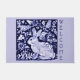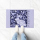 My original, copyrighted blue and white rabbit ceramic tile design is a classic decoration for a pretty welcome mat. "Welcome" is printed vertically next to the artwork of a cute bunny rabbit and birds in dark blue in a stylised garden filled with vines and flowers inspired by antique Delft, Dedham and Asian chinoiserie pottery motifs. This mat has a light blue background and dark blue "WELCOME." Whimsical, original, unique artwork & design by Tuzi Williams.