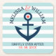 Elegant white and light blue stripes with navy-blue nautical boat anchor and customisable wedding gift template.