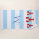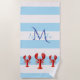 Light blue white stripes red lobsters name beach towel