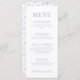 Elevate your wedding reception details with these elegant and whimsical light blue flower blooms rustic wedding menu cards. Immerse your guests in a botanical-inspired dining experience with the delicate charm of these refined menu cards. Perfect for adding a touch of sophistication to your rustic wedding celebration.