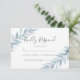 Stylish RSVP cards to coordinate with our light blue watercolor leaves wedding collection and snowy background perfect for a winter wedding. With an additional line for any dietary requirements.