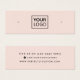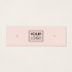 Light blush pink or custom color earring mini product display card with centered custom logo template and social media icons. The earring guides can be adjusted by adding and removing spaces in the template field, and by moving the whole element in the design tool.