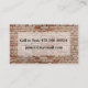 The Light Brick Pattern Wall Masonry Business Card is perfect for the business owner who needs a professional looking business card that stands out from the rest. With a light brick pattern and brown background, this card is great for an individual who owns a construction company or is in the construction industry.