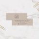 Light mocha brown or custom colour earring mini product display card with centred custom logo template and social media icons. The earring guides can be adjusted by adding and removing spaces in the template field, and by moving the whole element in the design tool.