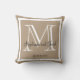 Personalised Tan Taupe, Black and white monogrammed pillow with bride and groom names and wedding date in decorative script.Solid coloured background. Makes a great gift for newly weds. Elegant,trendy, accessory for your bedroom, favourite chair,or any room in yourfamilies home. Customise with your names, monogram initial and wedding date. Availible in 100's of colours monogram, letters, initials, elegant, monogrammed, wedding, names, "bride and groom", wedding, chic, "wedding keepsake", home decor, trendy, white, grey, pillows,bachelorett