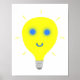 Painting of a yellow light bulb, with blue eyes and an arrow smile added, is printed on wall posters. You can choose your size and paper type.