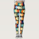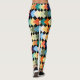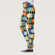 These leggings have a geometric design of light-colored diamonds overlapping each other on a field of black.