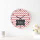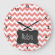 Light Coral Chevron Stripes; Chalkboard look Large Clock