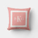 Customizeable modern and trendy pastel or light Coral and white monogram throw pillows or cushions. Personalise your gift by adding your own Custom Monogram or Initials. Choose your own font and colours to make it your own. This classic contemporary chic design for a pillow or cushion will enhance any home decor, living room, sofa, lounge, bedroom, office, beach house, boat or university or college dorm room, nursery, teenagers, girls, boys, baby or kids rooms. Great for teenagers, college or university, boys or girls, couples, newly weds or sweethearts. Perfect gift for Christmas, Birthdays and Weddings.
