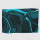 Image print with curves and light cyan strokes on a dark background, where light cyan undulations can cause the perception of metallic or nickel-plated, or relief and depth.