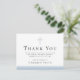 Elegant bereavement sympathy thank you card with custom colour Cristian cross and border. The default colours are Light dusty blue and white but background colour, border colour, cross colour, fonts and font colours can be changed with the design tool. Add a custom photo on the back.