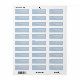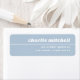Return address labels with your name in a retro style font and a thin border between your name and return address. The is text aligned to the right, white text on a light dusty blue background.