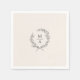A simple open laurel wreath of sketched leaves surrounds the monogram initials of the bride and groom on a neutral light ecru background. The elegant yet simple text template can be personalised with your initials. These napkins are available in 3 sizes. Shown here in the cocktail size, you can also order these napkins in luncheon or dinner size with either plain or coined edges.
