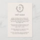 A tasteful and classic choice in wedding details enclosure cards, this design in neutral light ecru beige conveys a simple elegance in its text layout and classic style. A simple open laurel wreath of sketched leaves surrounds the monogram initial of the bride and groom. The elegant yet simple text template has a sample text template to personalise with your desired information. You can include hotel accommodations available to your guests, your wedding website, special events, transportation info or whatever details you wish to provide your guests. It is available in a variety of popular colours (shown here in the deep sage green and ecru) as well as many different paper types and weights.