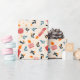 This cheerful hand-drawn pattern brings together festive elements such as candles, ornaments, leaves, branches, sprinkles, and tiny stars—all arranged across a warm light background. The artwork is inspired by holiday baking, seasonal décor, and cozy winter gatherings. Each element is textured to feel handcrafted and organic, creating a lively, playful holiday look with soft reds, greens, navy, and golden tones.