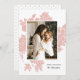 This beautiful holiday photo card features cutout flowers in blush pink over a white background. Easy to personalise! The back contains a pattern of tiny black dots, and the background colour can be customised on both the front and back, if desired.