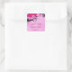 © Sunny Mars Designs - Floral Hibiscus: Soft Light Fuchsia Magenta Square Custom Wedding Save The Date or Favour Stickers - These customisable save the date stickers feature an illustration of a dark pin, purple or fuschia swirly hibiscus floral decoration.