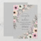 A sophisticated dove gray backdrop sets a serene stage for this romantic floral design. Hand-painted blush pink roses, white anemones with dark centers, and sprigs of purple lavender create a lush, airy aesthetic. Delicate sage green foliage and subtle watercolor textures add depth and elegance, making it ideal for a soft spring or summer event.