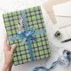 Light Green and Grey Plaid Pattern Wrapping Paper
