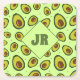 Eyecatching coaster design of hand drawn olive green avocado fruit slices. There's a monogrammed diamond in the middle to add your own initials