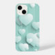 Light green background with 3D white hearts iPhone Case