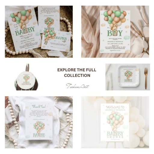 Float into a world of whimsy and wonder with our Teddy Bear Green Hot Air Balloon Baby Shower napkins! Set against a backdrop of dreamy skies, a cuddly teddy bear drifts in a charming hot air balloon, inviting your loved ones to celebrate the arrival of your little bundle of joy.