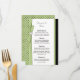 Light green and black polka dots with FAUX Green Ribbon and Bow Wedding Menu Cards. Personalise with your own information. There is a matching Invitation and RSVP card available. If you want other matching products, please contact me through my store. If you want to move the text, or change the size, font, or colour, click Customise It. Please Note: This is not a real ribbon or bow, but a graphic image.