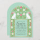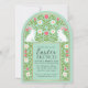 Hop into Easter with a brunch to remember! This invite features a charming arch-shaped frame filled with florals and playful white rabbits against a light green background. Perfect for a festive gathering! Personalize it to meet your needs.